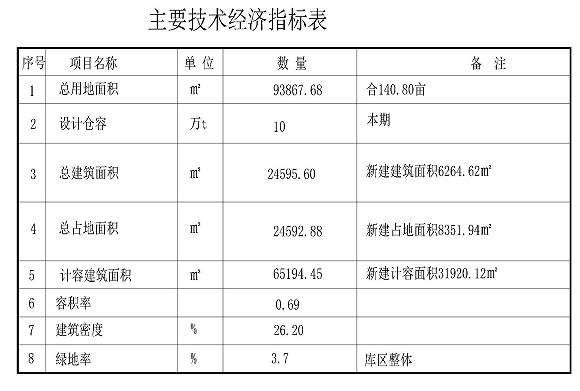 二、規(guī)劃內(nèi)容:本項(xiàng)目為擴(kuò)建項(xiàng)目,庫(kù)區(qū)現(xiàn)有辦公樓、宿舍、食堂等辦公生活建筑;平房倉(cāng)等儲(chǔ)備建筑;地磅房、結(jié)算室、質(zhì)檢室、變配電間、消防泵房、藥品庫(kù)、工具室等生產(chǎn)輔助類建筑。庫(kù)區(qū)用地未發(fā)生變化,主要建設(shè)區(qū)域?yàn)閹?kù)區(qū)中部,拆除閑置廢棄建筑,并新建淺圓倉(cāng),倉(cāng)容10萬(wàn)t以及配套提升塔。新建10棟淺圓倉(cāng),單倉(cāng)倉(cāng)容1萬(wàn)噸,建筑面積為5131.10㎡,占地面積為8020.19㎡,建筑高度為33.8米,耐火等級(jí)為二級(jí),丙類倉(cāng)庫(kù)。并在東側(cè)新建一棟57.6米高的提升塔,提升塔建筑面積為1133.52㎡,占地面積為331.75㎡,耐火等級(jí)二級(jí),丙類廠房。