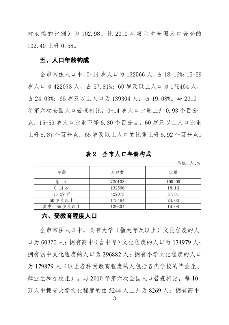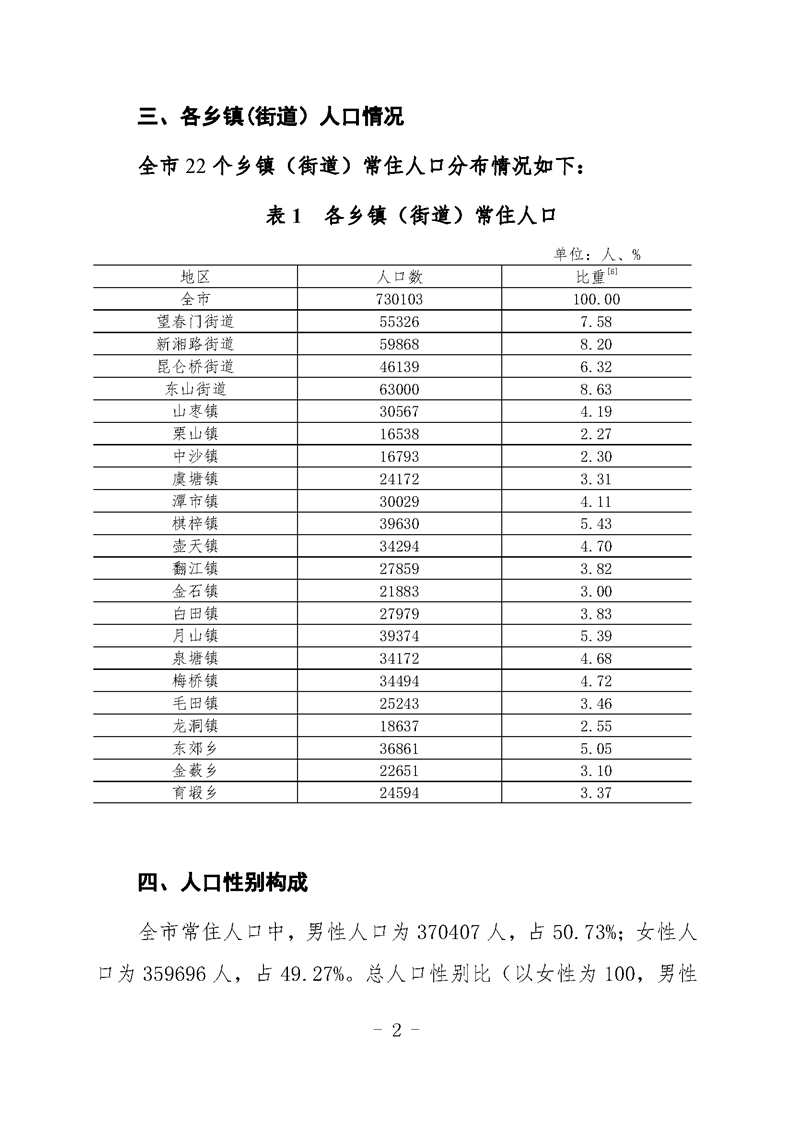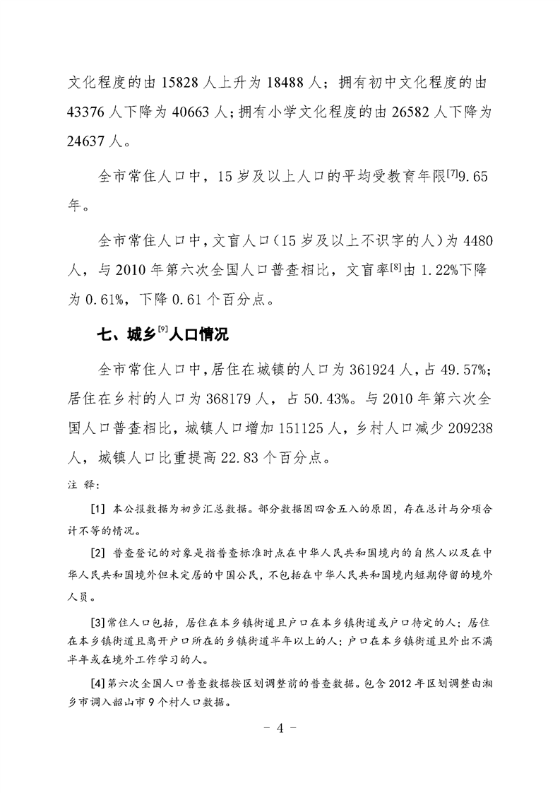 湘鄉市第七次全國人口普查公報