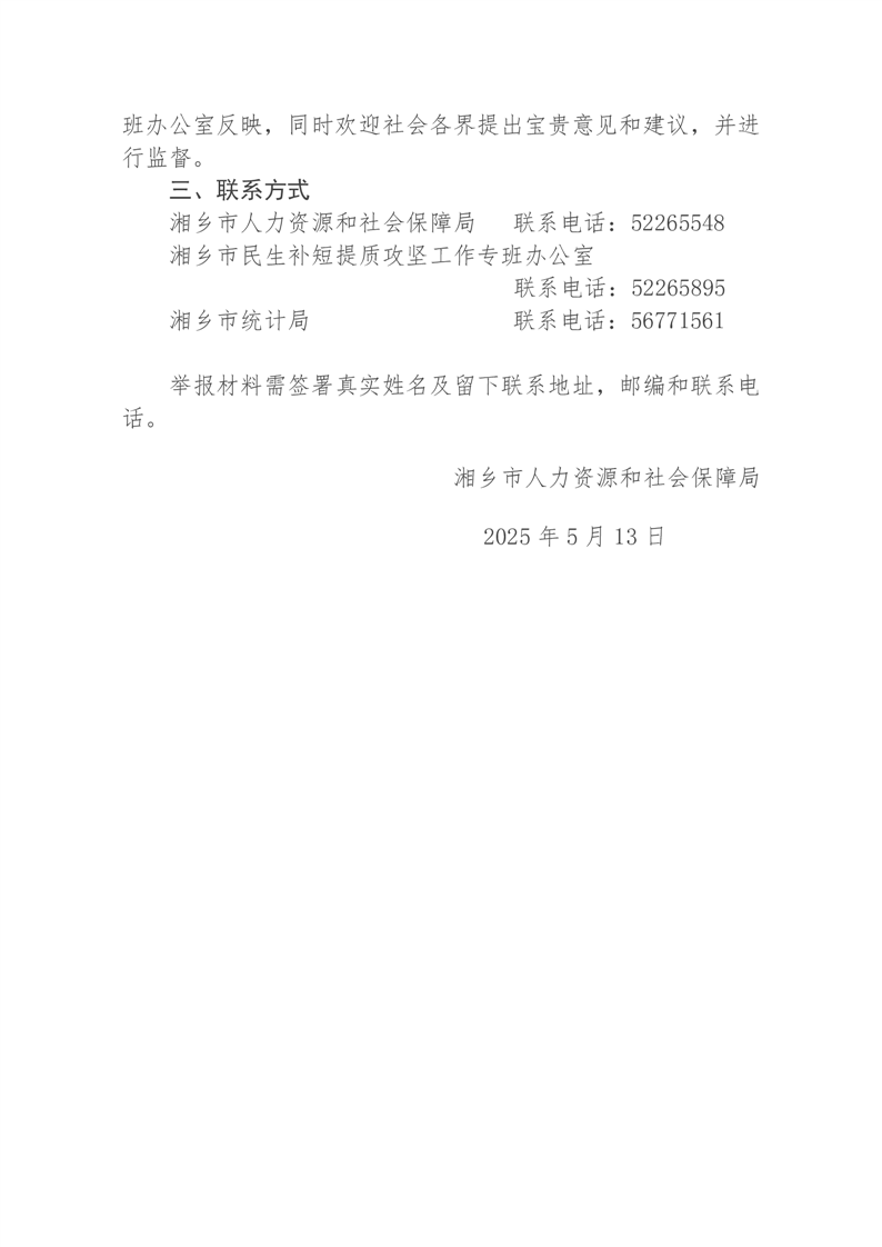 湘鄉市人力資源和社會保障局2025年重點民生實事任務的公示