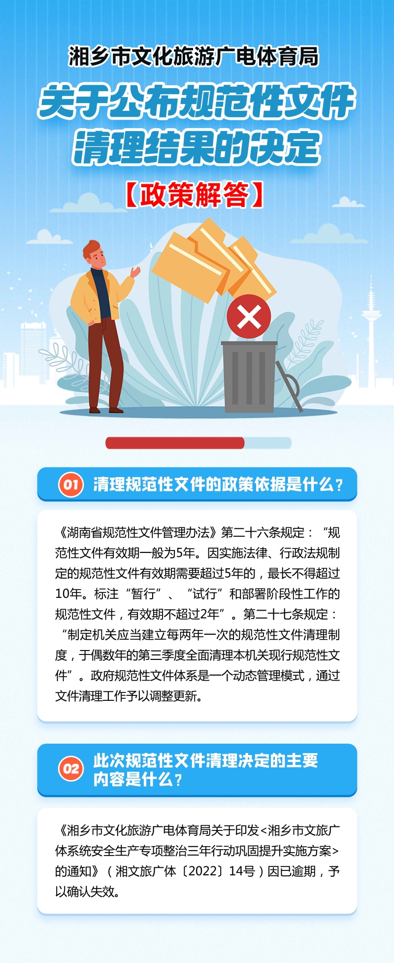 【政策圖解】《湘鄉(xiāng)市文化旅游廣電體育局關(guān)于公布規(guī)范性文件清理結(jié)果的決定》的政策解讀