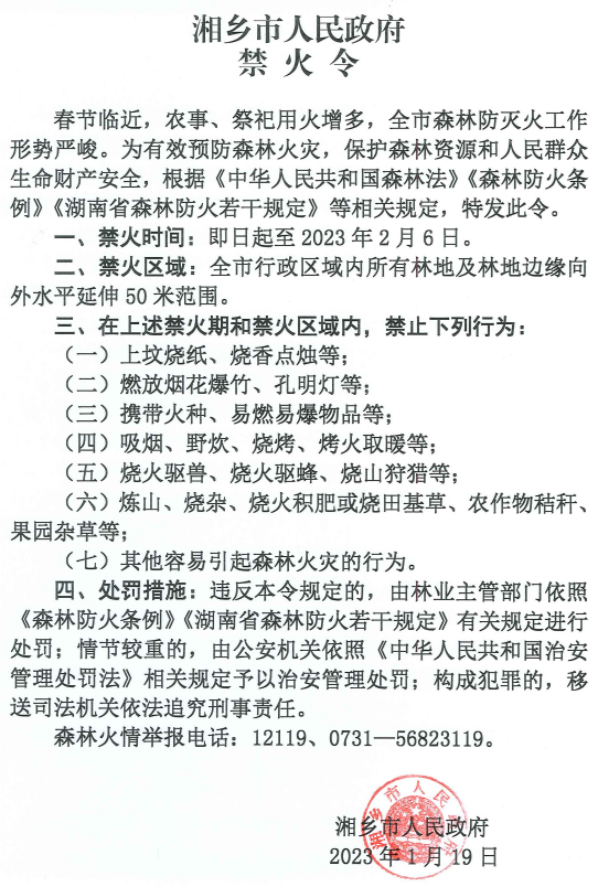 湘鄉市人民政府禁火令