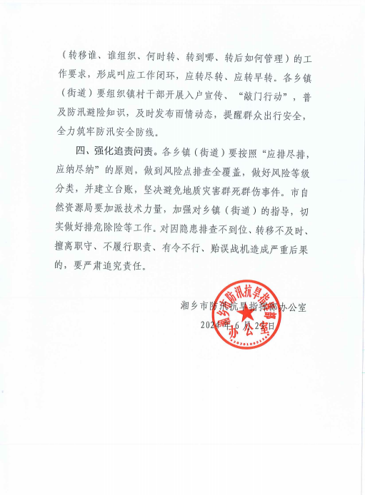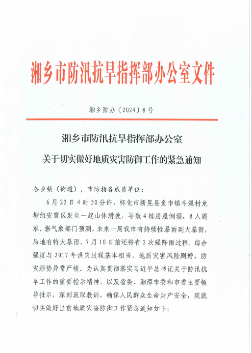 湘鄉(xiāng)市防汛抗旱指揮部辦公室關(guān)于切實做好地質(zhì)災(zāi)害防御工作的緊急通知