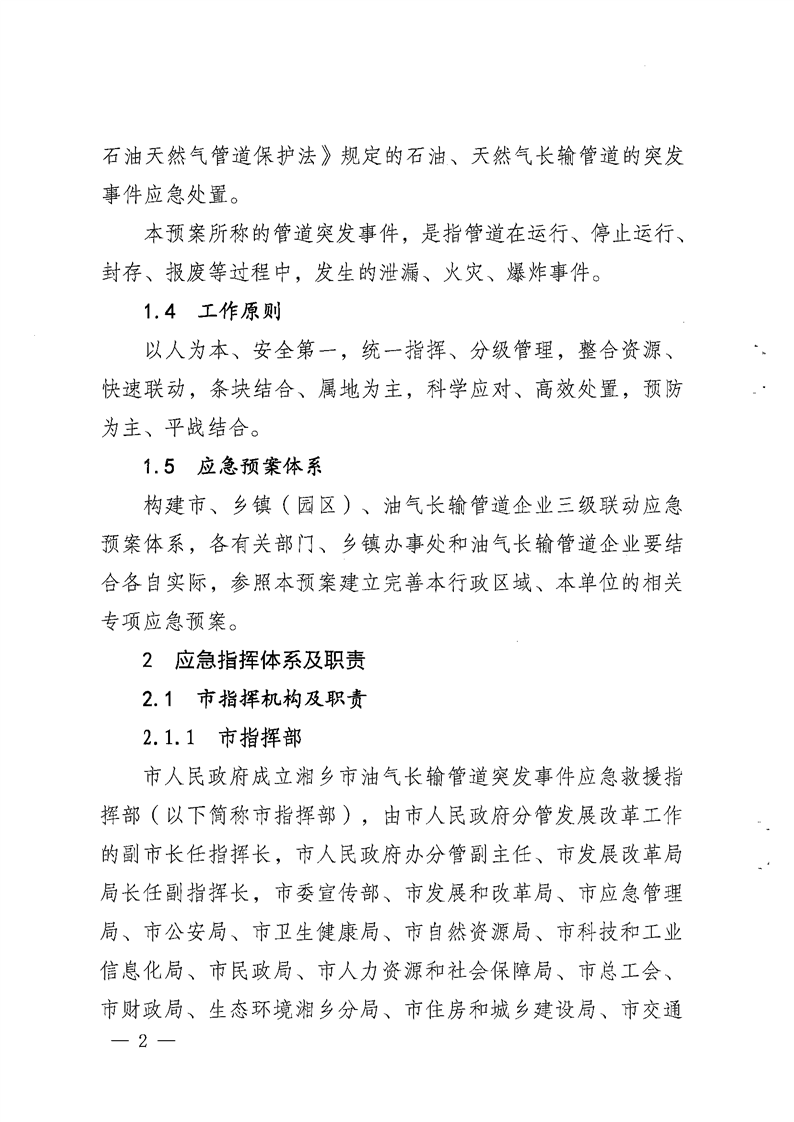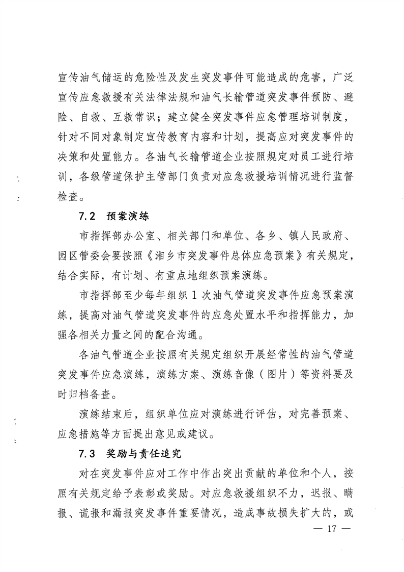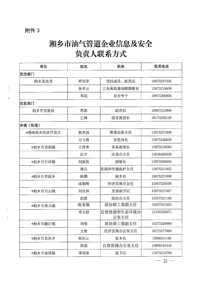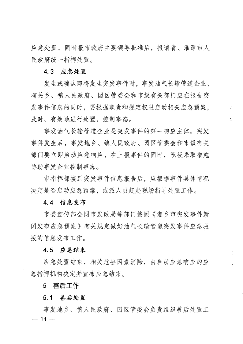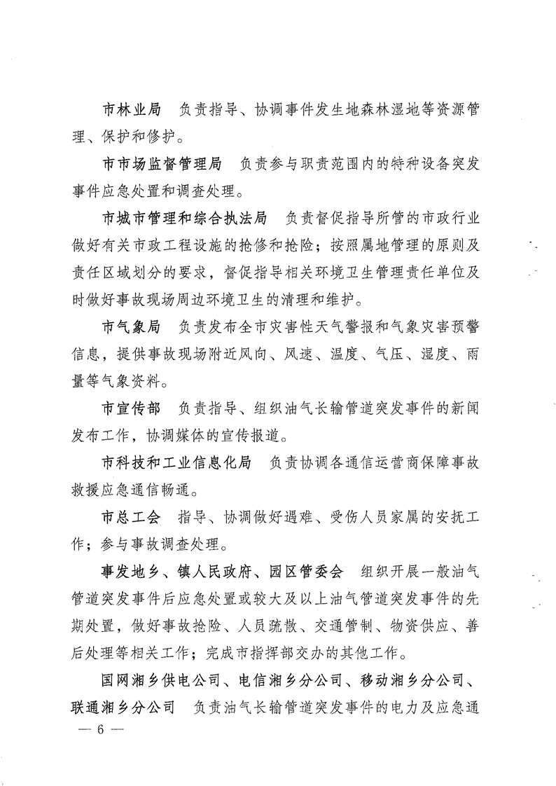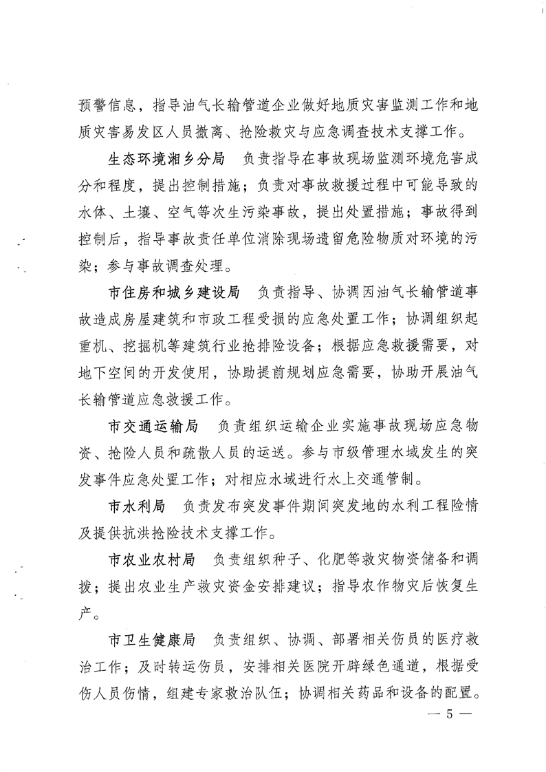 湘鄉市能源安全生產專業委員會關于印發《湘鄉市油氣長輸管道突發事件應急預案》的通知