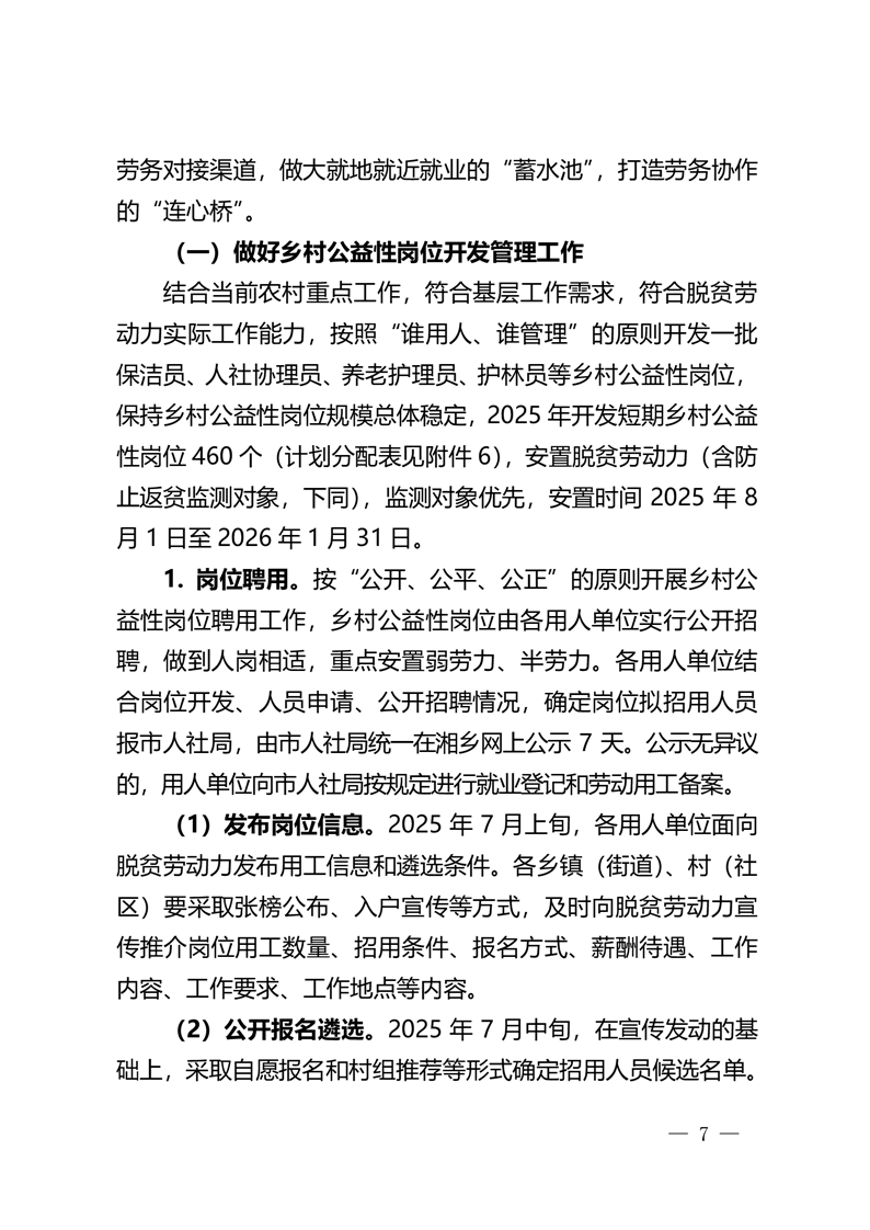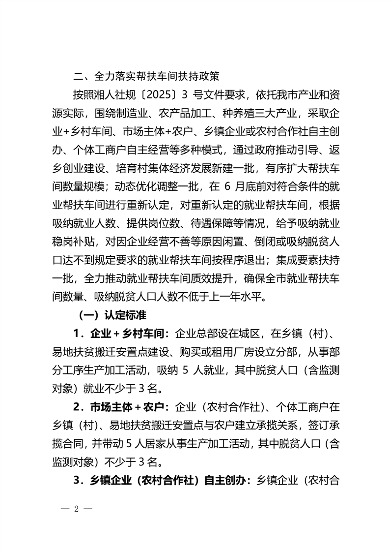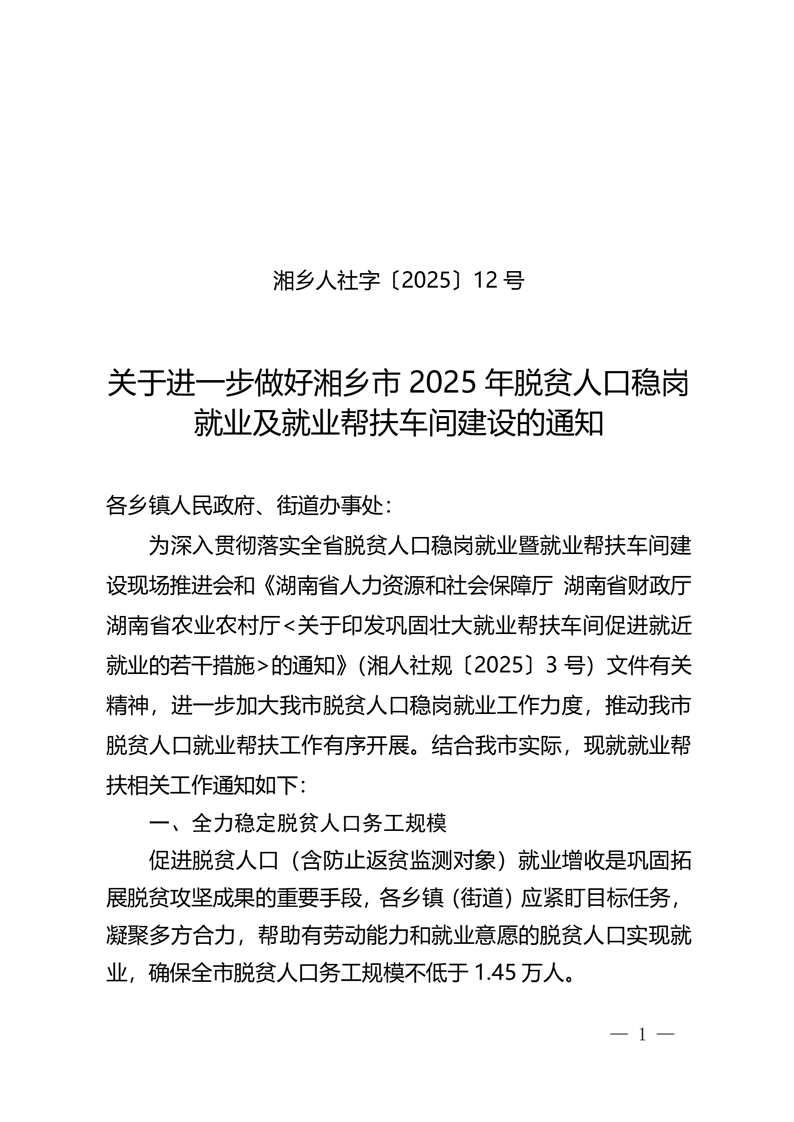 關于進一步做好湘鄉市2025年脫貧人口穩崗就業及就業幫扶車間建設的通知