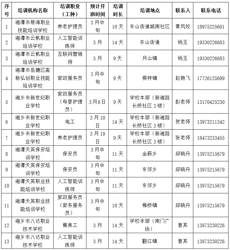 2026年3月湘鄉市首批13個政府補貼性職業技能培訓班上新!