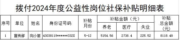 關于撥付2024年公益性崗位人員社保補貼的補充公示