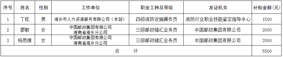 根據《湖南省人力資源和社會保障廳 省財政廳 省醫療保障局 國家稅務總局湖南省稅務局關于做好失業保險援企穩崗保生活工作的通知》(湘人社規〔2024〕8 號)文件精神,為做好我市失業保險技能提升補貼發放工作,經我局就業服務中心對申報資料進行資格初審,初認定丁旺等3人符合失業保險參保職工技能提升補貼條件。為堅持公開、公平、公正原則,廣泛接受社會各界監督,現將補貼名單及金額予以公示。如有異議,請于公示期內向我局就業服務中心如實反映,公示時間為2025年3月24日至2025年3月30日。監督電話:0731-56768137