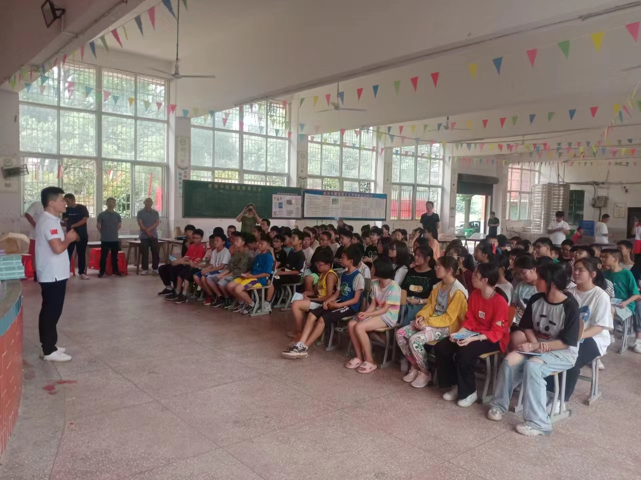 活動現場,湘潭市水運事務中心、湘潭紅十字會、市交通運輸局參加現場宣傳咨詢活動,對學生講授水上交通安全知識和水上自救互救方法,針對近幾年,水上發生的學生暑假溺亡事故的特點,對學生們提出具體的水上安全的措施和要求,防止溺水事故發生。