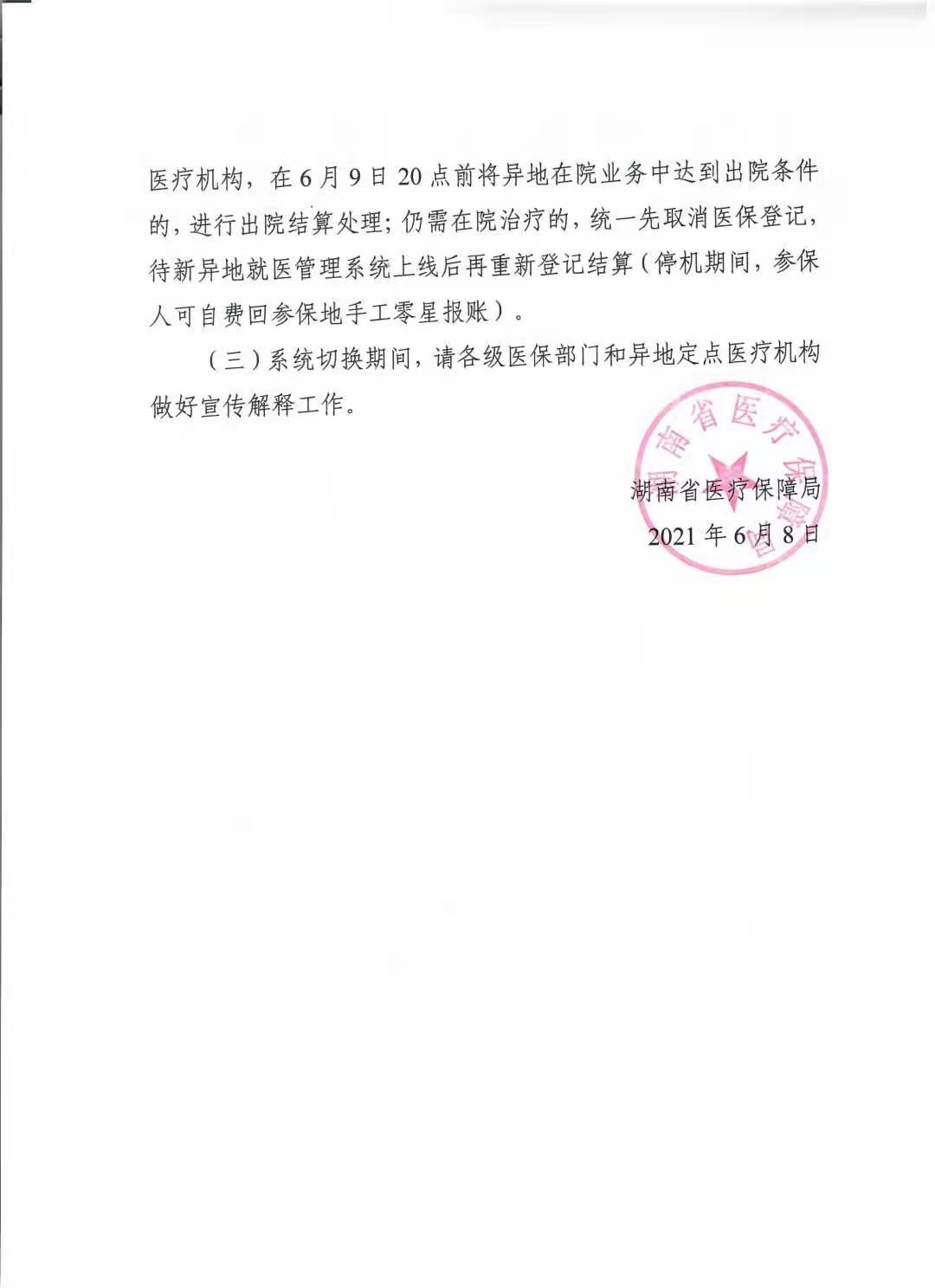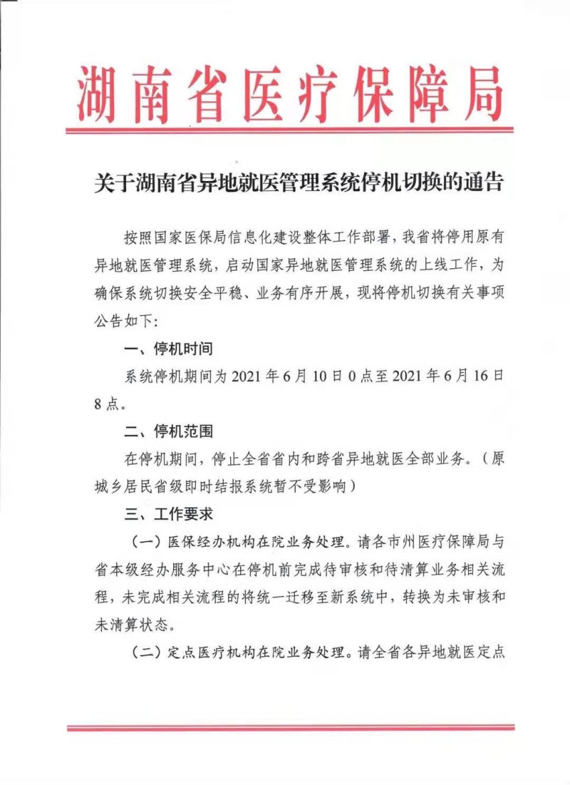 關于湖南省異地就醫(yī)管理系統(tǒng)停機切換的通告