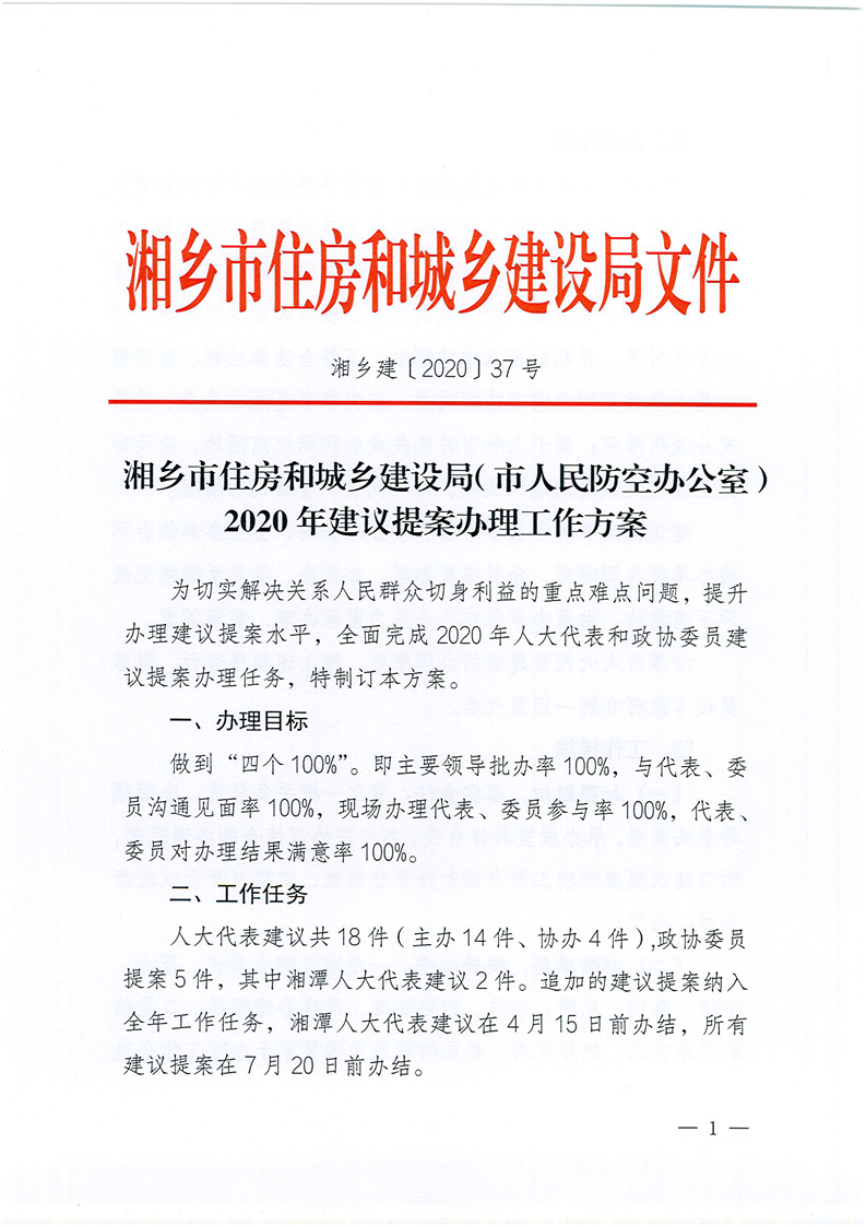 湘鄉市住房和城鄉建設局(市人民防空辦公室)2020年建議提案辦理工作方案