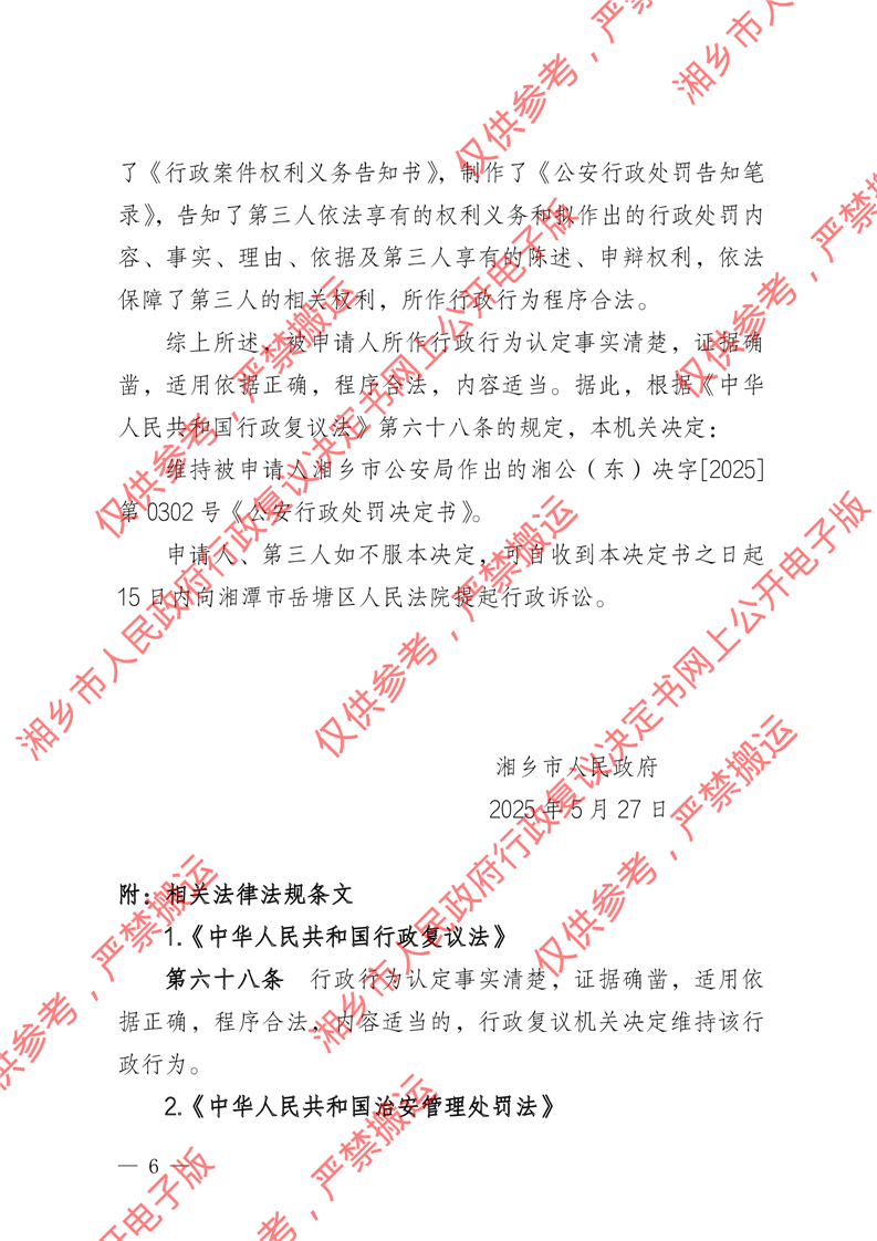 湘政復決字〔2025〕39號《行政復議決定書》