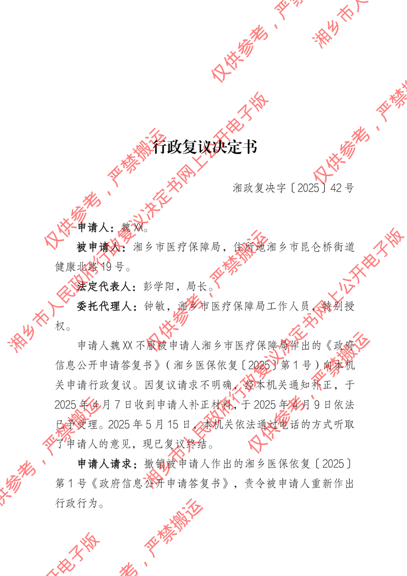 湘政復(fù)決字〔2025〕42號《行政復(fù)議決定書》