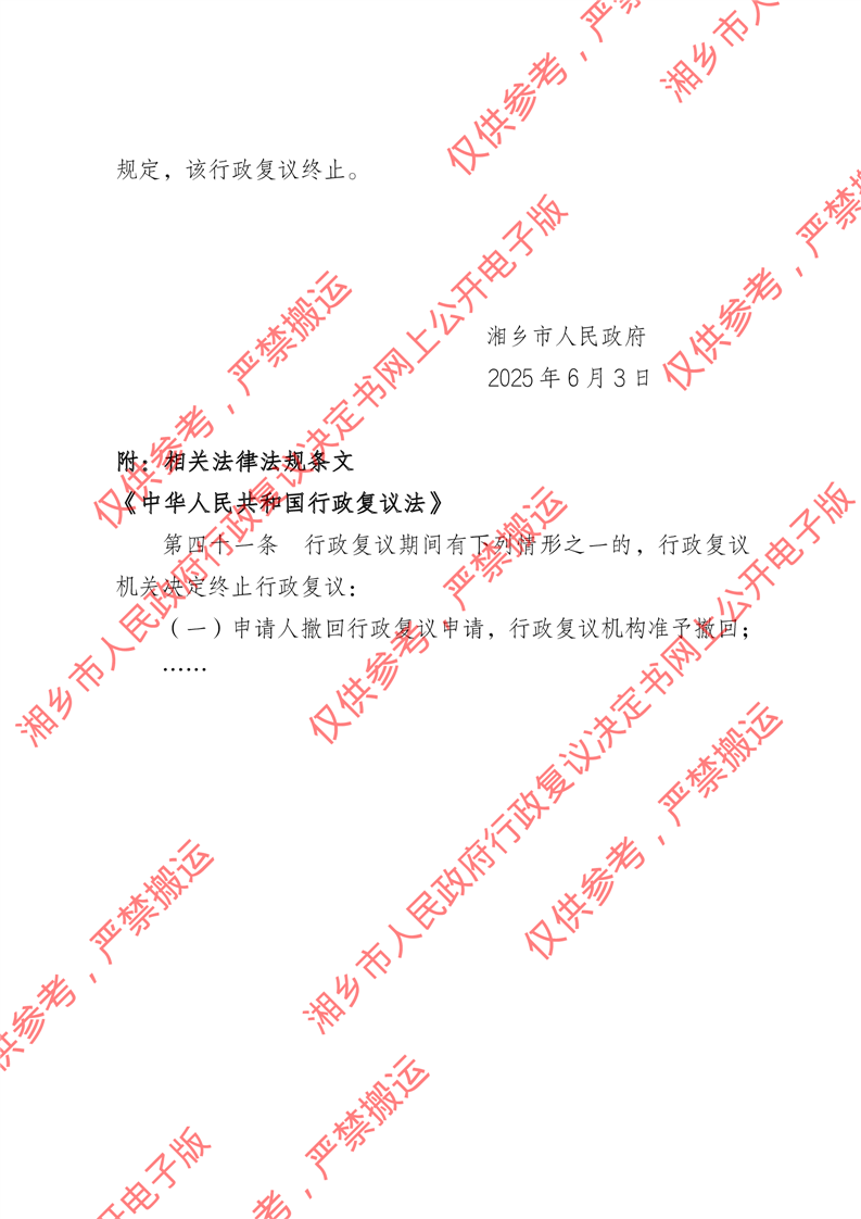 湘政復(fù)終字〔2025〕30號《行政復(fù)議終止決定書》
