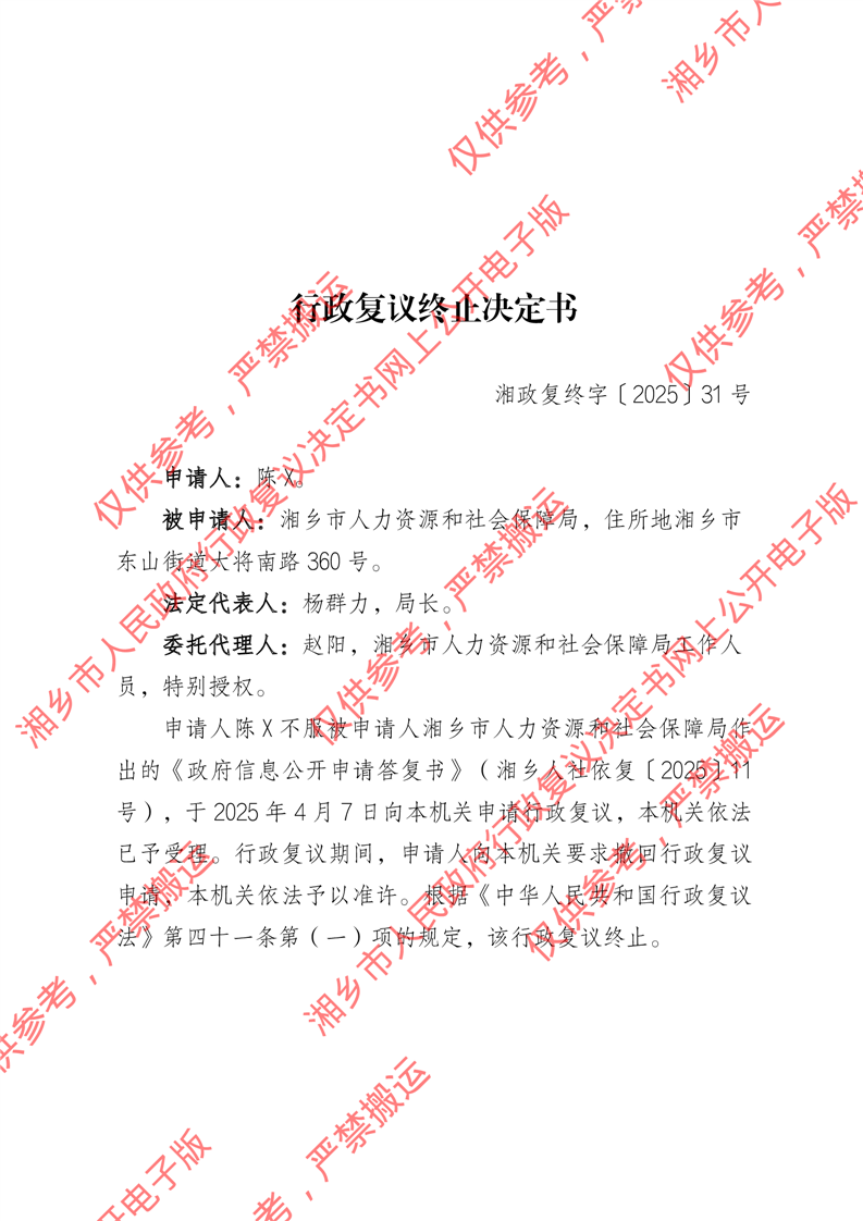 湘政復(fù)終字〔2025〕31號(hào)《行政復(fù)議終止決定書(shū)》