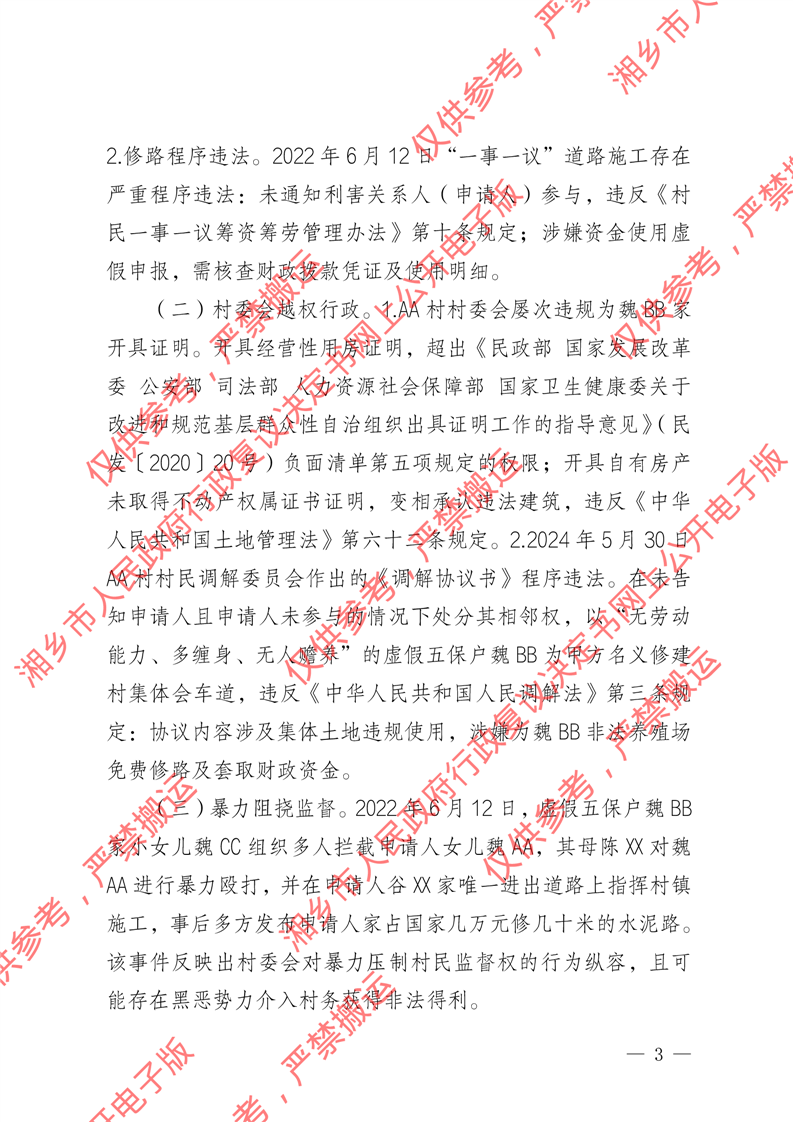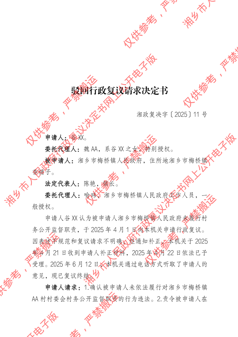 湘政復駁字〔2025〕11號《駁回行政復議請求決定書》