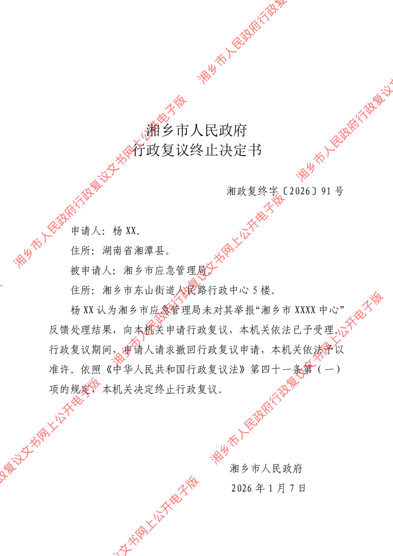 湘政復終字〔2026〕91號 《行政復議終止決定書》