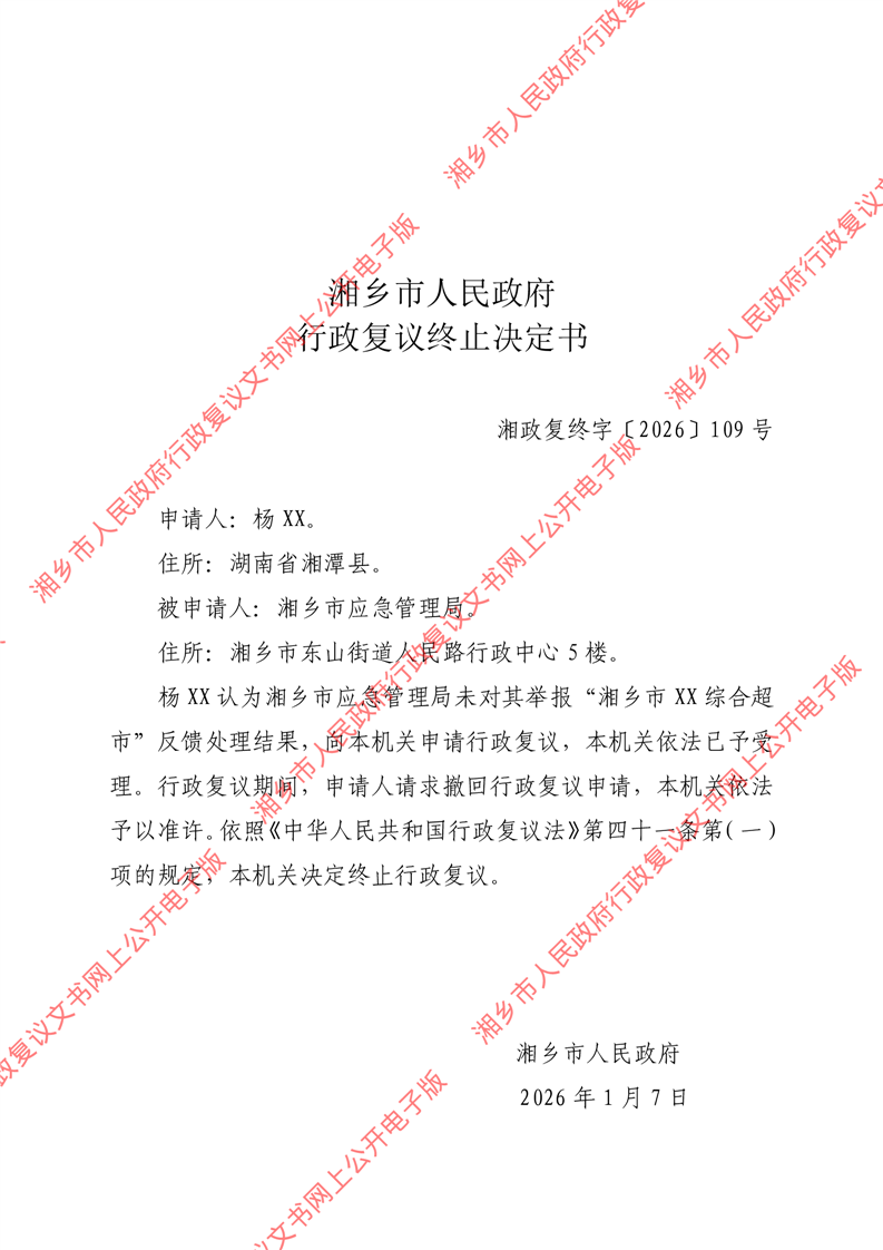 湘政復終字〔2026〕109號 《行政復議終止決定書》