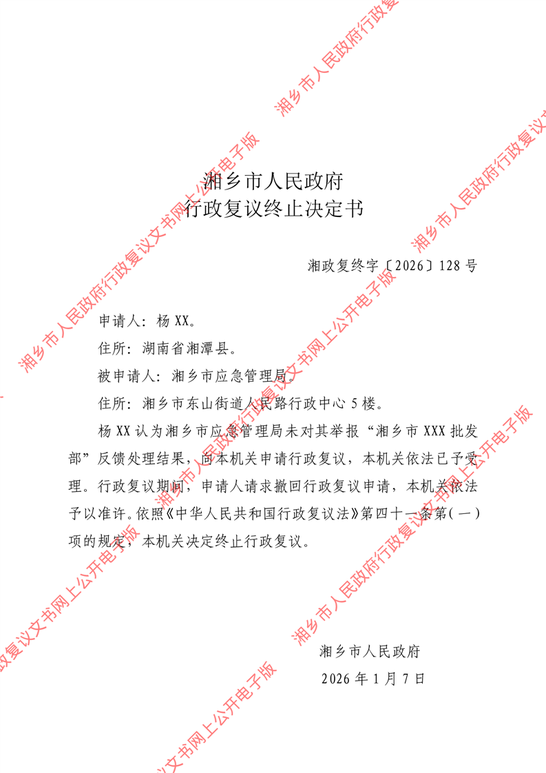 湘政復終字〔2026〕128號 《行政復議終止決定書》