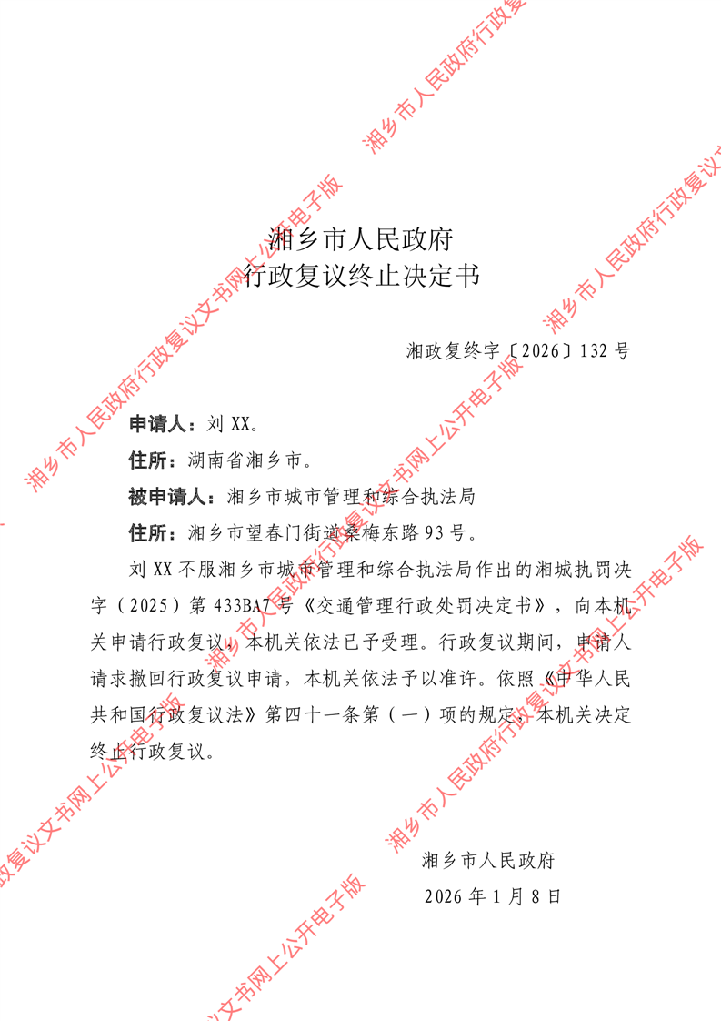 湘政復終字〔2026〕132號《行政復議終止決定書》