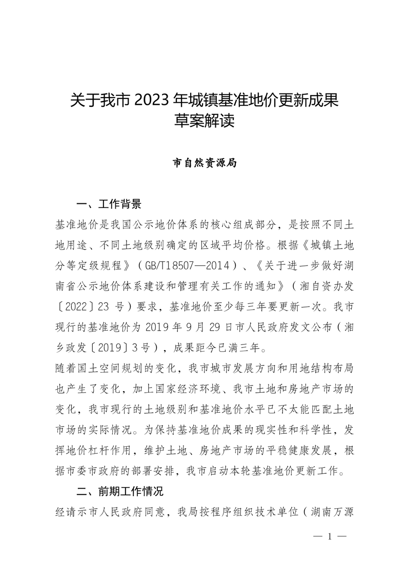 關(guān)于《湘鄉(xiāng)市城鎮(zhèn)基準(zhǔn)地價(jià)更新成果》的草案解讀