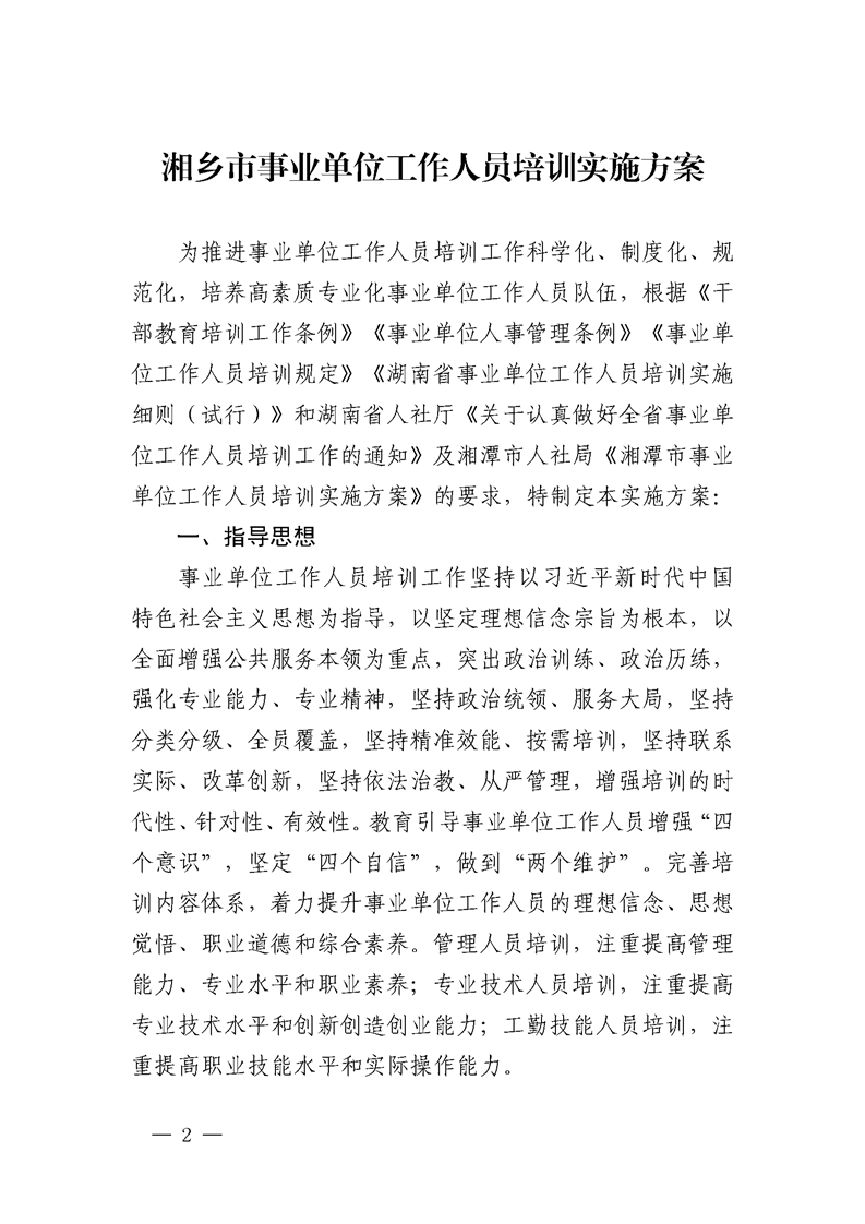 | 湘鄉(xiāng)市人力資源和社會保障局關(guān)于印發(fā)《湘鄉(xiāng)市事業(yè)單位工作人員培訓(xùn)實施方案》的通知.pdf |