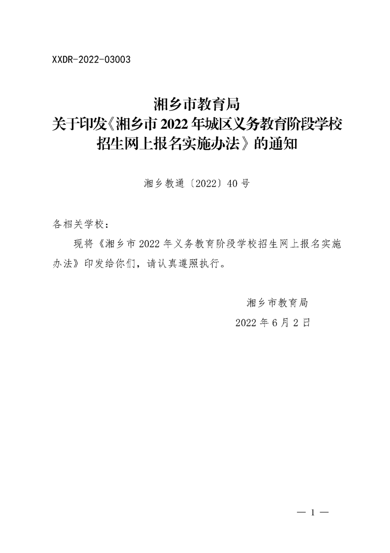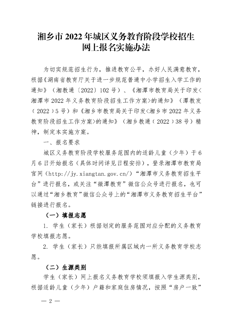湘鄉(xiāng)市教育局關(guān)于印發(fā)《湘鄉(xiāng)市2022 年城區(qū)義務(wù)教育階段學(xué)校招生網(wǎng)上報名實(shí)施辦法》的通知