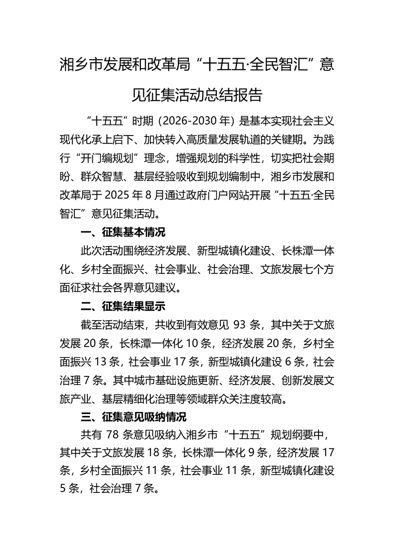 湘鄉市發展和改革局“十五五·全民智匯”意見征集活動總結報告