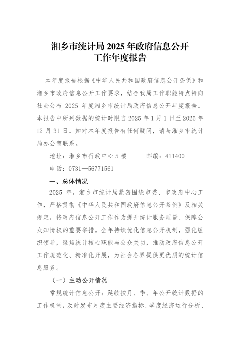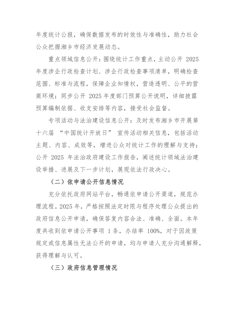 湘鄉(xiāng)市統(tǒng)計局2025年政府信息公開工作年度報告