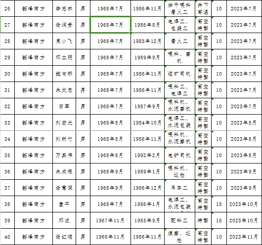 為準確落實特殊工種提前退休相關政策規定,提高特殊工種審批準確性,根據《人力資源和社會保障部關于進一步加強企業特殊工種提前退休管理工作的通知》(人社部發〔2018〕73號),經審核檔案等申報資料,現對擬符合政策條件的人員名單予以公示,公示時間五個工作日(2023年3月27日-2023年3月31日)。如有異議,請在公示期內實名反映相關情況。