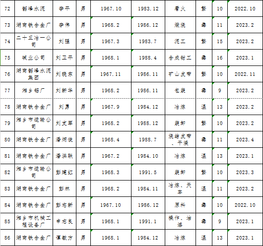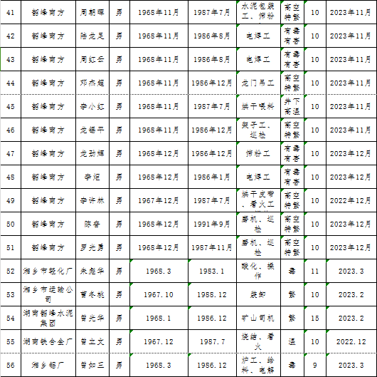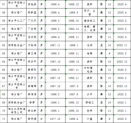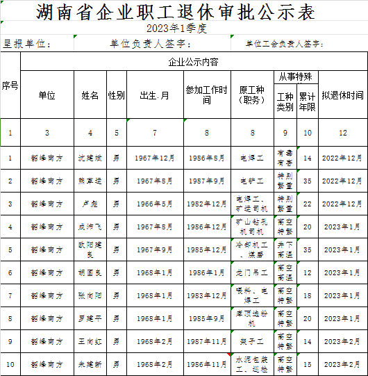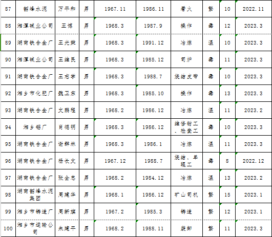 湘鄉市2023年3月特殊工種提前退休擬通過人員公示