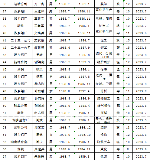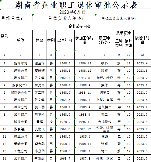 湘鄉(xiāng)市20232季度第二批次特殊工種提前退休擬通過人員公示