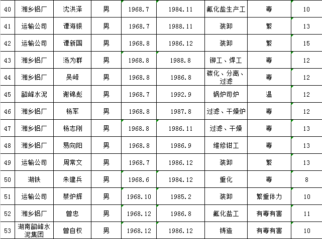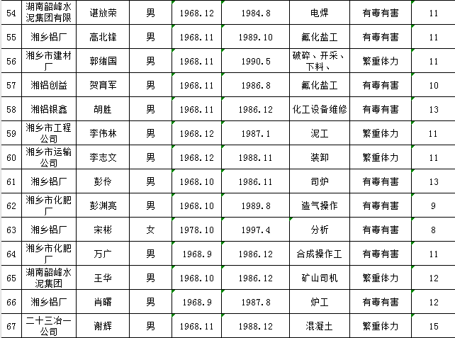 湘鄉市2023年特殊工種提前退休擬通過人員公示