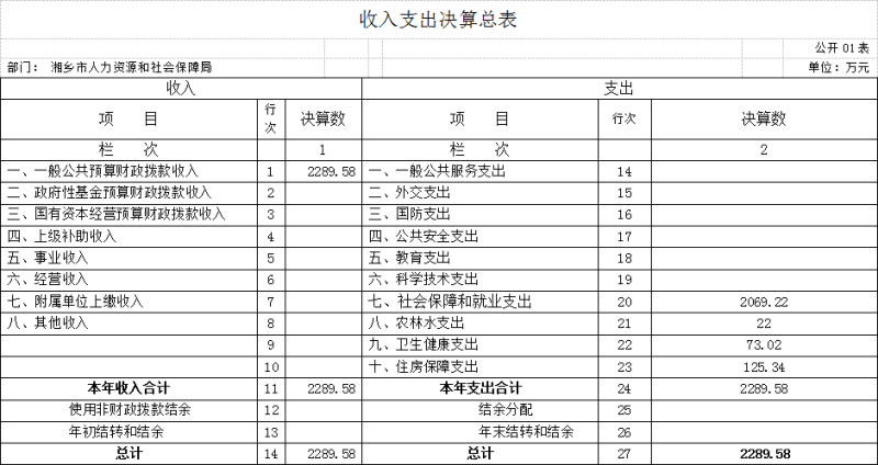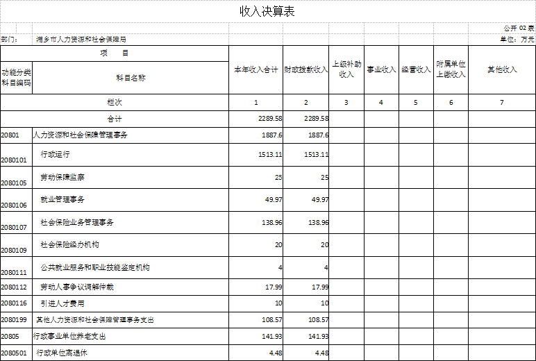 2021年度 湘鄉市人力資源和社會保障局部門決算