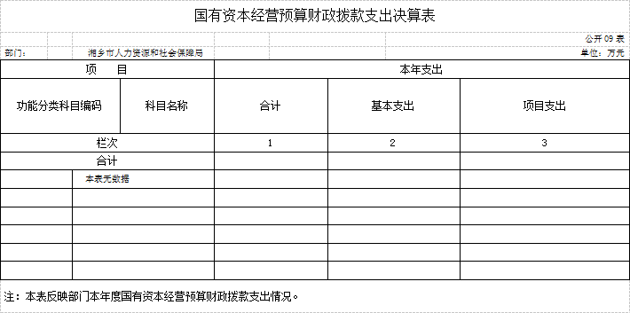 九、國有資本經營預算財政撥款支出決算表