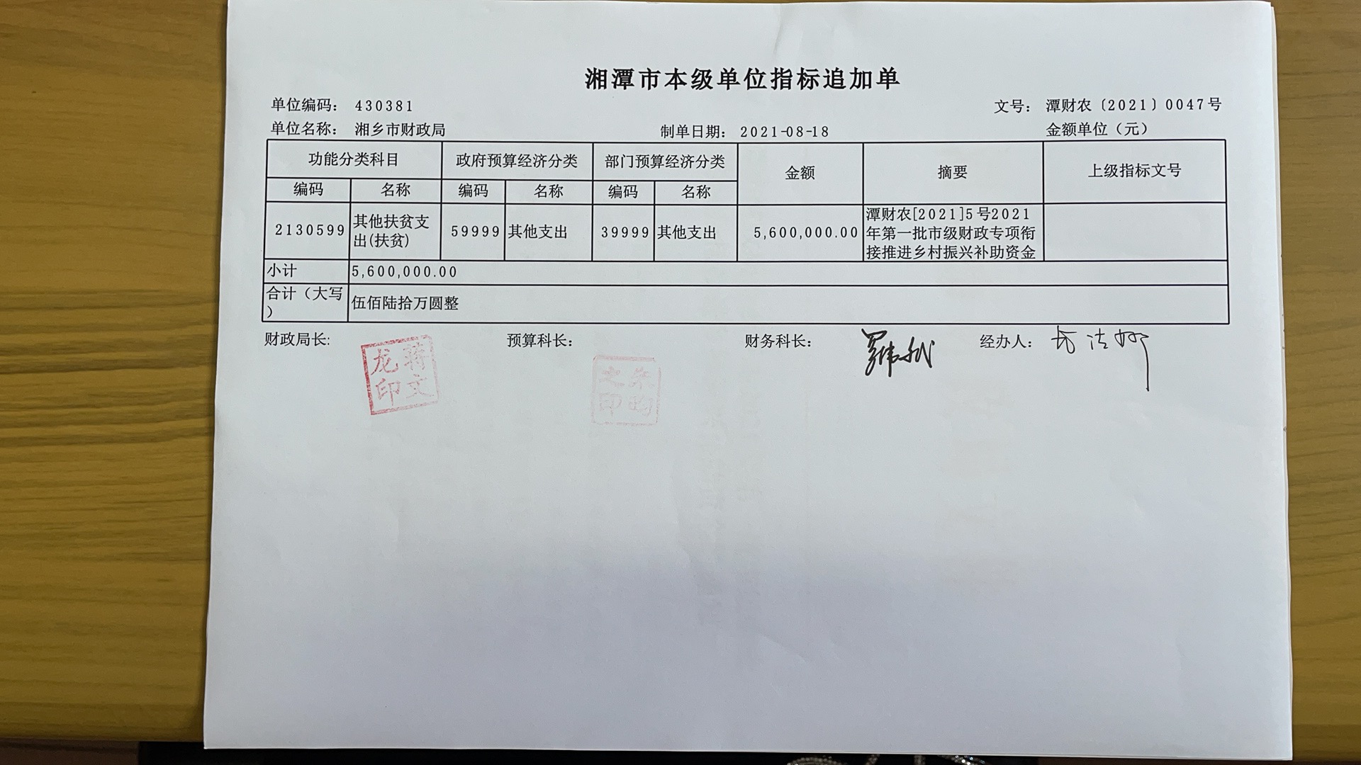 湘潭市財政局關于下達2021年第一批市級財政專項銜接推進鄉村振興補助資金的通知