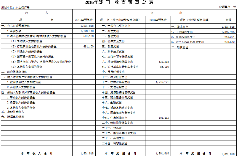 2016年部門預算總表(水土保持局)