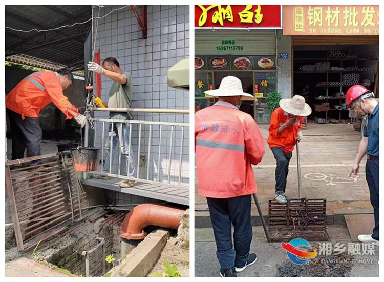 行動中,市政工作人員對楊金機埠、鸕鶿橋機埠、鎮(zhèn)湘橋機埠、東山排漬站、730機埠入河口和進出道路進行清障,聯(lián)盟機埠箱涵外河道進行清撈,確保行洪通暢。在新湘西路、車站南路、東風(fēng)路等路段,市政工作人員通過手動清撈、吸污車和高壓水槍壓力疏通等方式,逐一清理雨、污水井里的油污淤泥。