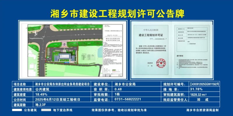 湘鄉(xiāng)市建設工程規(guī)劃許可公告牌(湘鄉(xiāng)市公安局東郊派出所業(yè)務用房建設項目)