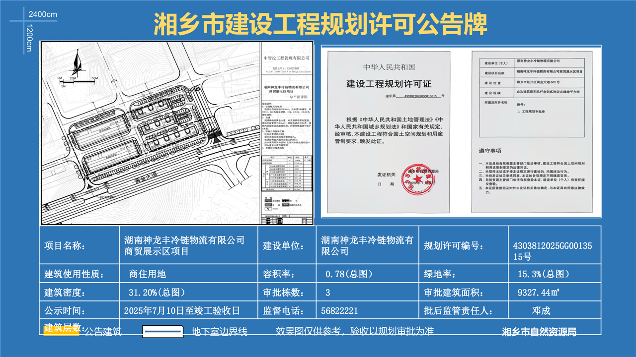 湘鄉市建設工程規劃許可公告牌(湖南神龍豐冷鏈物流有限公司商貿展示區項目)
