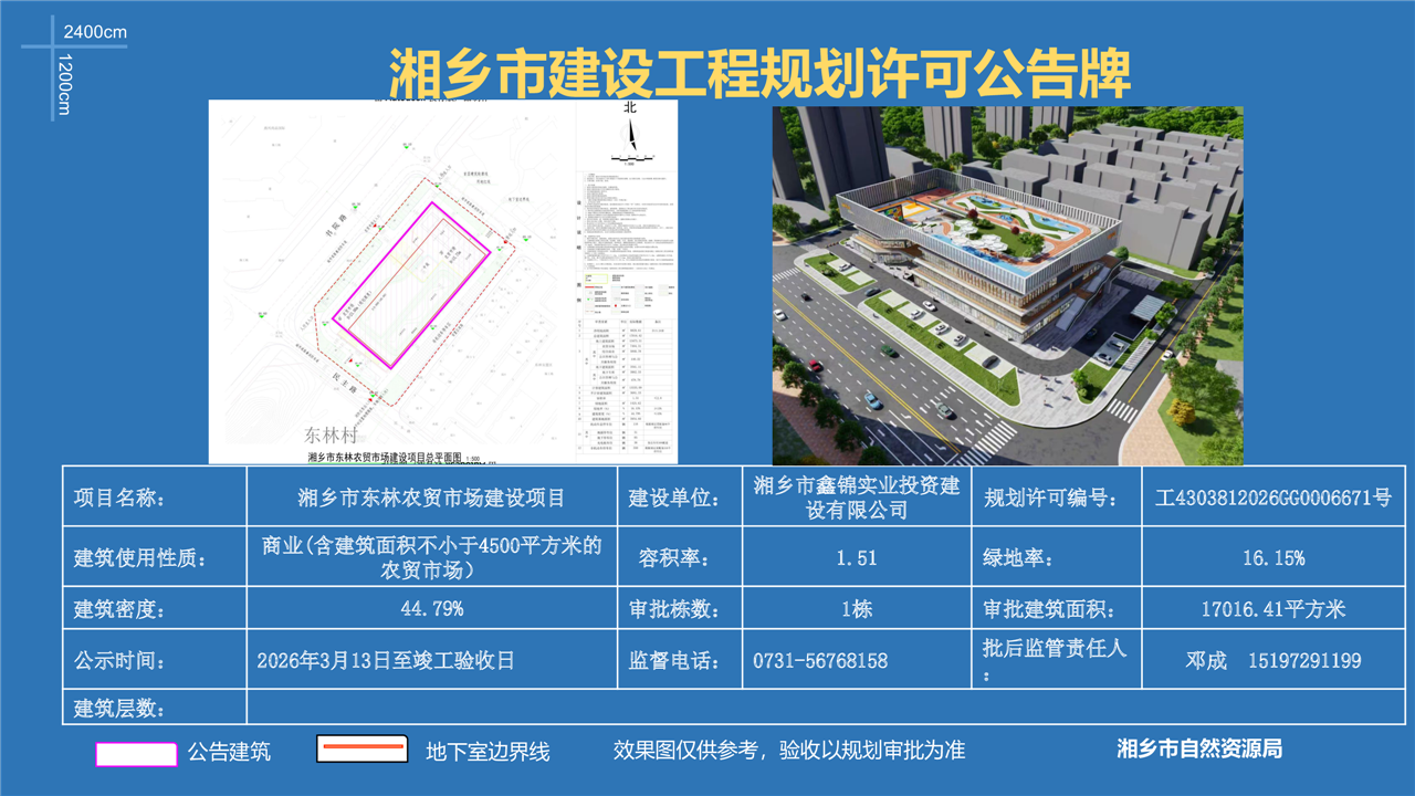 湘鄉市建設工程規劃許可公告牌(湘鄉市東林農貿市場建設項目)