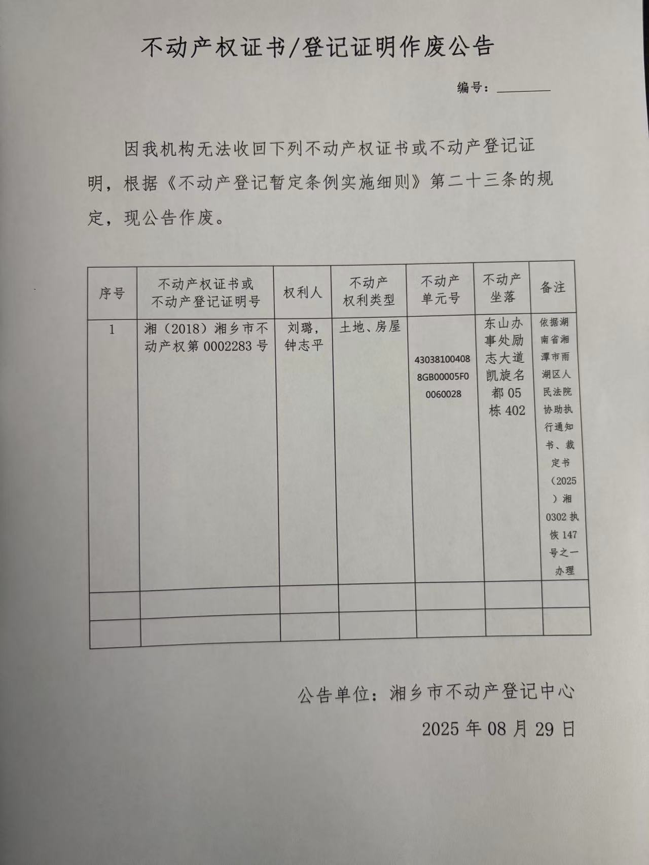 索引號:4303000006/2025-1389530 發(fā)布機(jī)構(gòu):不動產(chǎn)信息公開 發(fā)布目錄:不動產(chǎn)登記公告
