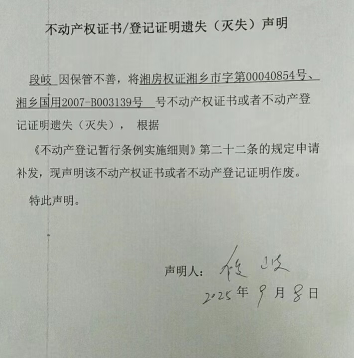 索引號:4303000006/2025-1391158 發(fā)布機構:不動產(chǎn)信息公開 發(fā)布目錄:不動產(chǎn)登記公告