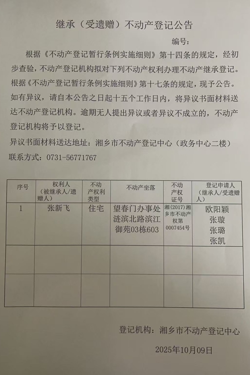索引號:4303000006/2025-1395027 發布機構:不動產信息公開 發布目錄:不動產登記公告