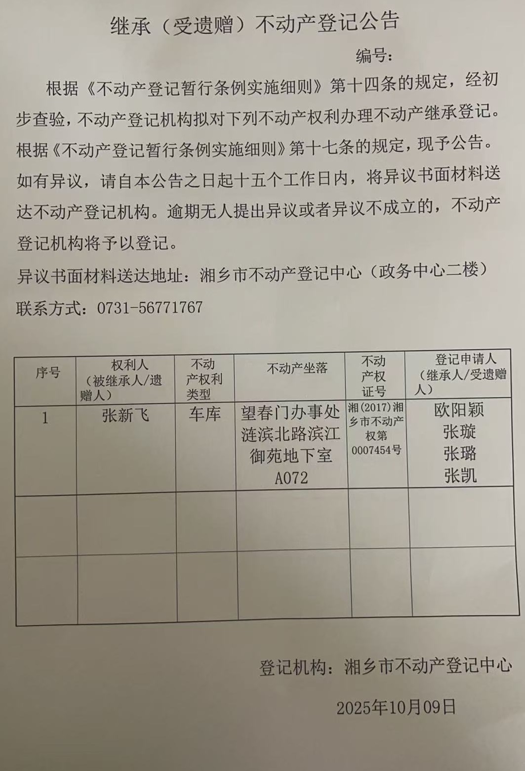 歐陽穎、張璇、張璐、張凱(不動產(chǎn)繼承公告)車庫