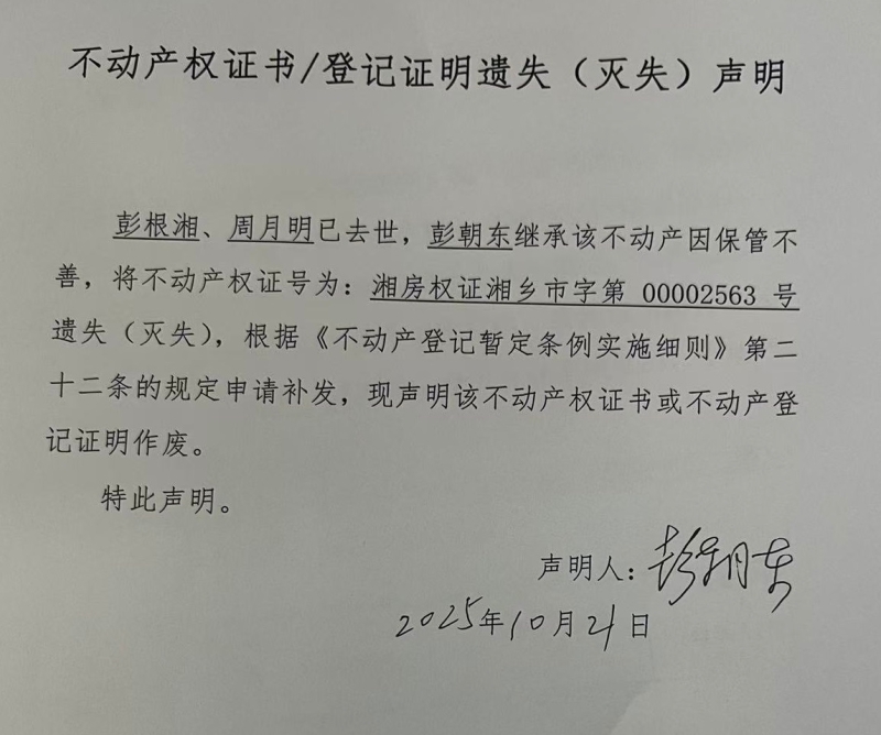 彭根湘、周月明(不動產遺失聲明)