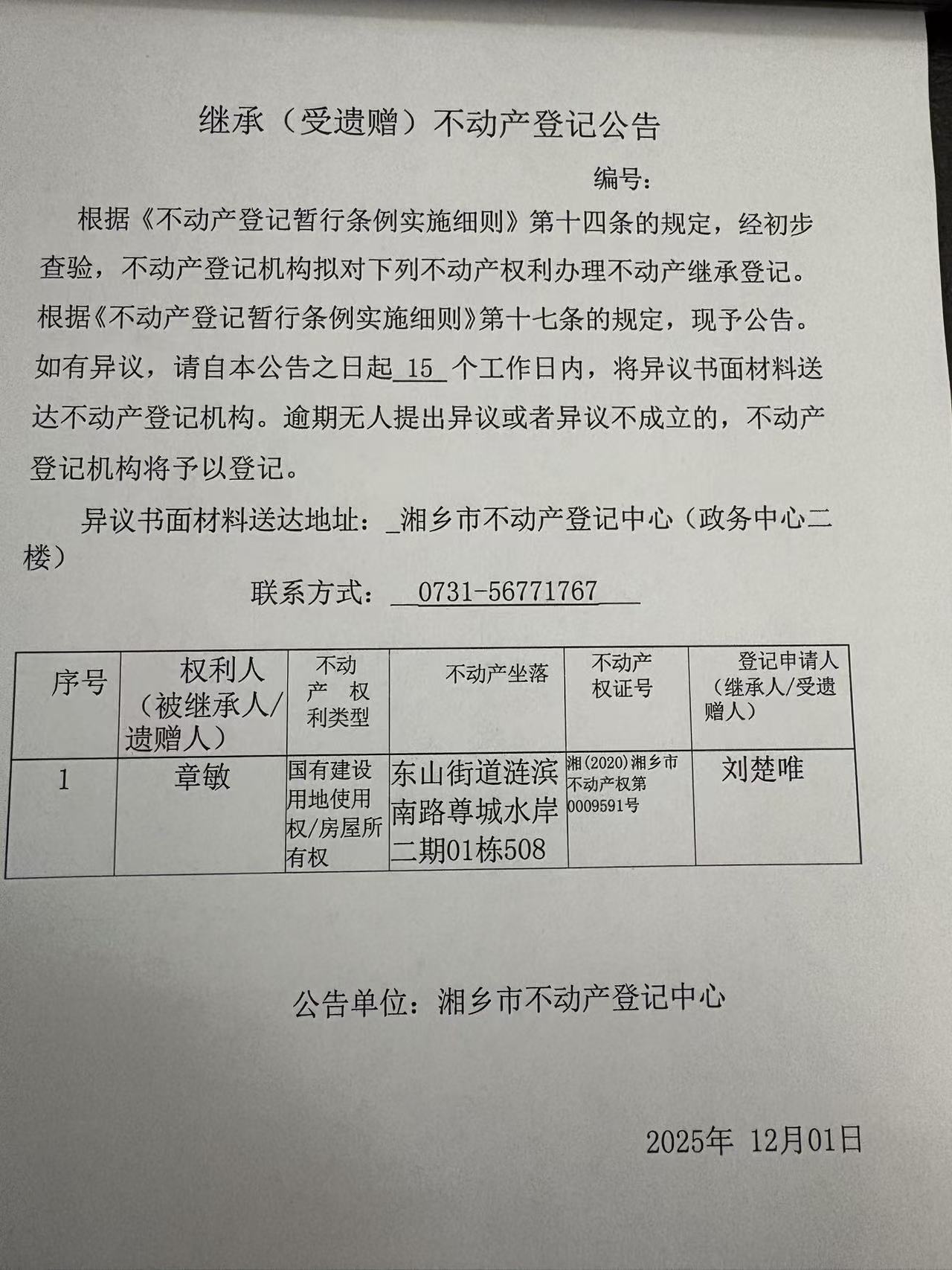 繼承不動產登記公告(章敏)
