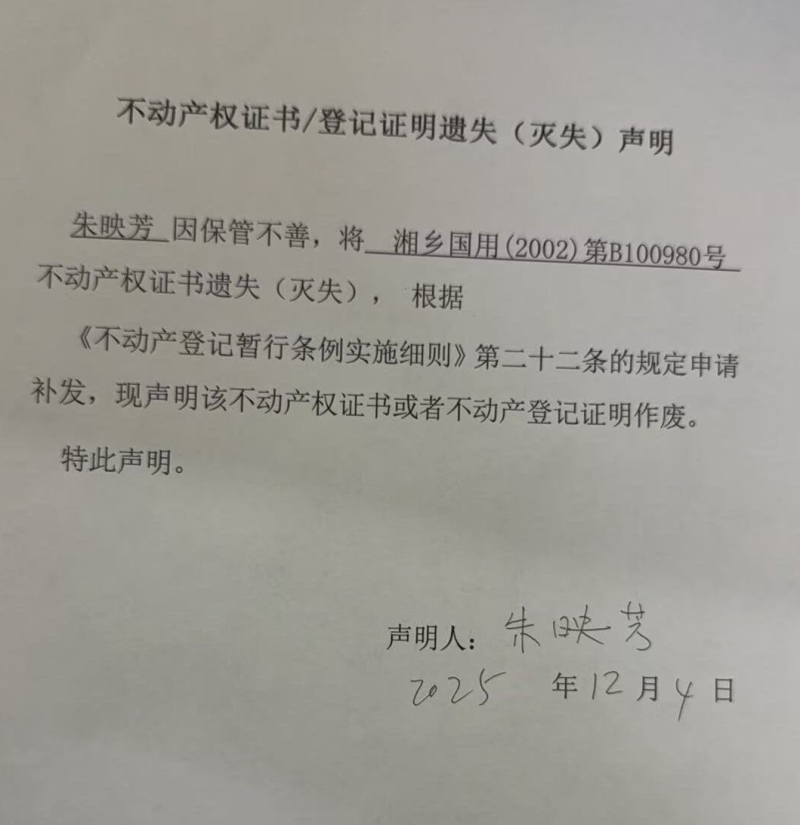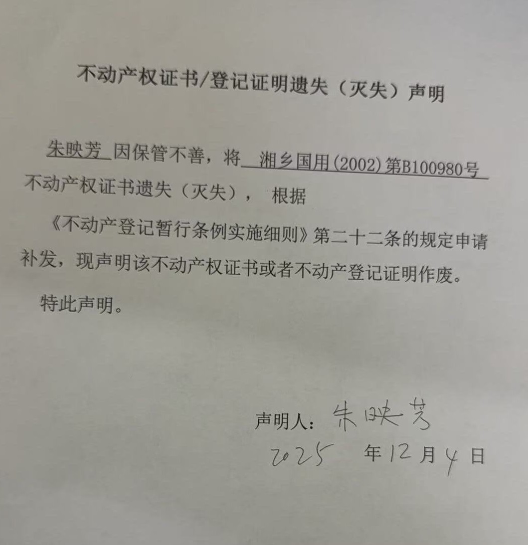 索引號:4303000006/2025-1404854 發布機構:不動產信息公開 發布目錄:不動產登記公告