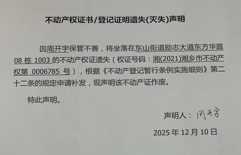 周開宇(不動產遺失聲明)