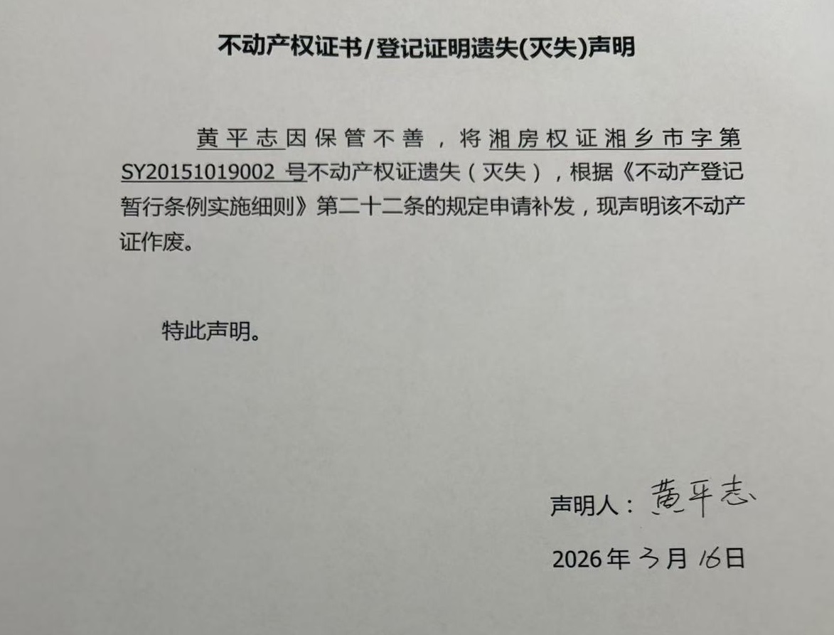 黃平志(不動產(chǎn)遺失聲明)