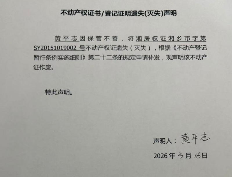 索引號:4303000006/2026-1422253 發(fā)布機構(gòu):不動產(chǎn)信息公開 發(fā)布目錄:不動產(chǎn)登記公告